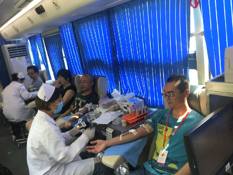 尽管烈日炎炎,但献血志愿者们的热情更加激扬,献血车边挤满了人。活动开始后,填表、测体重、量血压、抽血……大家有条不紊地排着队,显得轻松而认真。大家纷纷表示,无偿献血是救死扶伤、无私奉献的高尚行为。无偿献血架起了人与人之间爱心的桥梁,是一项非常具有积极意义的社会公益活动,今后将继续支持和参与此类公益活动。
