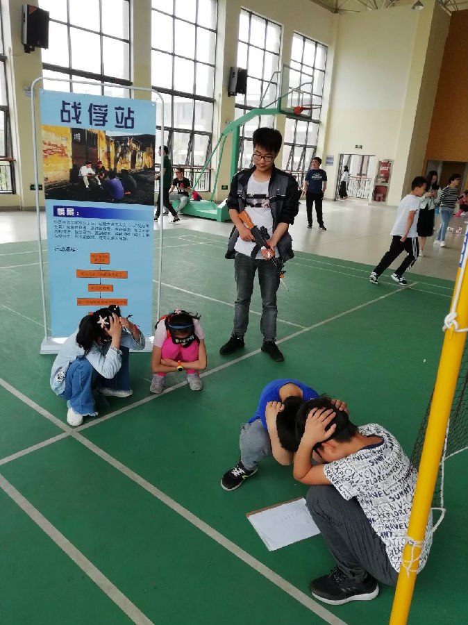 活动通过开展“瑞德十字”游戏,让广大青少年了解国际人道法的基本规则,活动中,志愿者们将学生分为5组,每组设一名领队,带领组员依次进入游戏站点完成游戏。游戏站点有战俘站、炮兵部队站、人道救援站、军事司令站及难民营站。每个站点都设有一位主持人和多名助教。学生们按照主持人的规则介绍和讲解有秩序地完成相应的任务,参与的同学们热情高涨,依次扮演平民、士兵以及人道工作者的角色,在游戏里和人道法进行了一次亲密接触,最活动中了解了国际人道法的基本规则,领悟到珍惜和平、拒绝战争、保护人的生命与尊严的理念。
